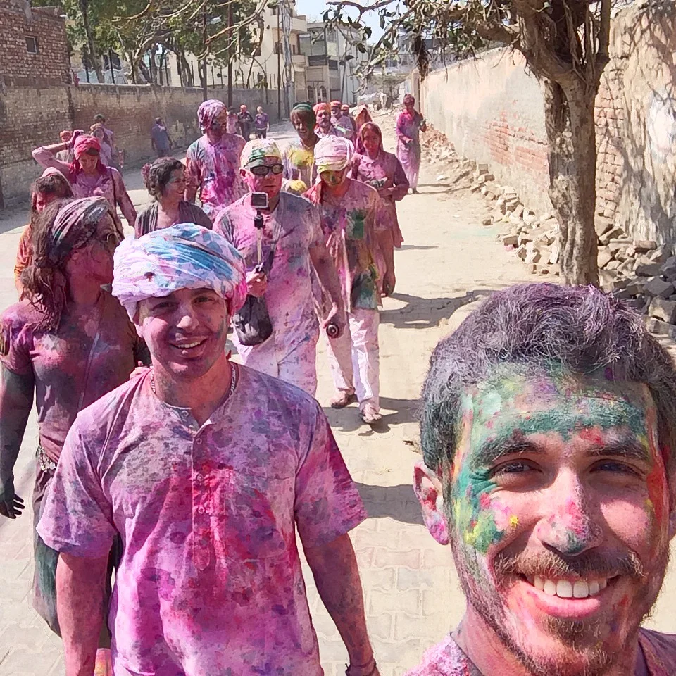 At this point is should not come as a surprise that Holi is difficult if you are a woman. Sadly people in this region of the world are extremely sexually repressed, so if you go out on Holi as a woman, expect to get harassment, felt up, and generally attacked by the local population. While I detest the conduct of many of the men during Holi, there’s no two ways about it: these guys will take every opportunity you give them. Frequently, the men in the group had to physically yank our female compatriots out of spontaneous flash mobs full of men. This isn’t to say there aren’t good people though. At one point Chan Tal took a giant handful of powder right in the eyes rendering her blind for a few minutes, but a group of guys came to our aid with water and rags to clean her up. It takes a special breed of woman, with especially think skin and a high tolerance for BS, to wander the streets of India during Holi. People think I’m crazy for traveling around the world by myself, but it’s nothing compared to the women in our Holi group. They are tough.