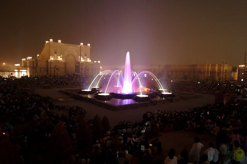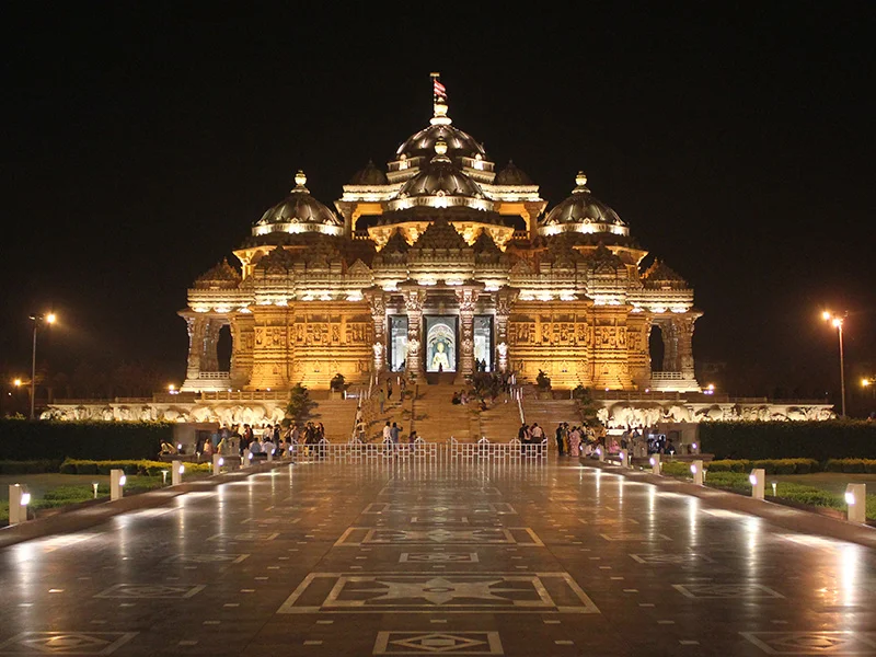 Akshardham is an enormous Swaminarayan temple complex dedicated to displaying and fostering Indian culture, Hindu religion, and traditional architecture. So far on my travels I’ve only seen the old dilapidate ruins of elaborate religious buildings. Nearly all of them are falling apart, completely destroyed, or in the process of renovation, but Akshardham is the type of temple I imagined many of these old buildings looked like in their heyday. The temple itself rivals that of the Sheikh Zayed Mosque in Abu Dhabi, UAE when it comes to over-the-top ornate embellishments and intricate carvings, but what I found most interesting is how Akshardham is a strange blend between Hindu temple and Disneyland. You first arrive in a giant parking lot and are corralled into enormous barricaded lines to check your electronics (no cameras allowed unless you pay extra), go through security and buy your tickets. Entrance to the temple is free, but they have a surprising variety of smaller “adventures” like the giant audio-visual water show, thematic gardens, large format films, the Hall of Values museum, and even a cultural boat ride that, from the pictures, looked eerily similar to the It’s a Small World ride at the Magic Kingdom in Orlando, Florida.