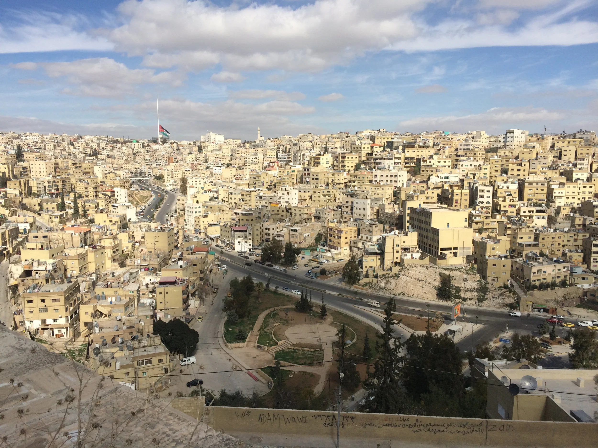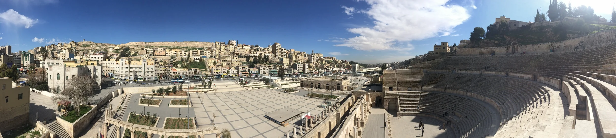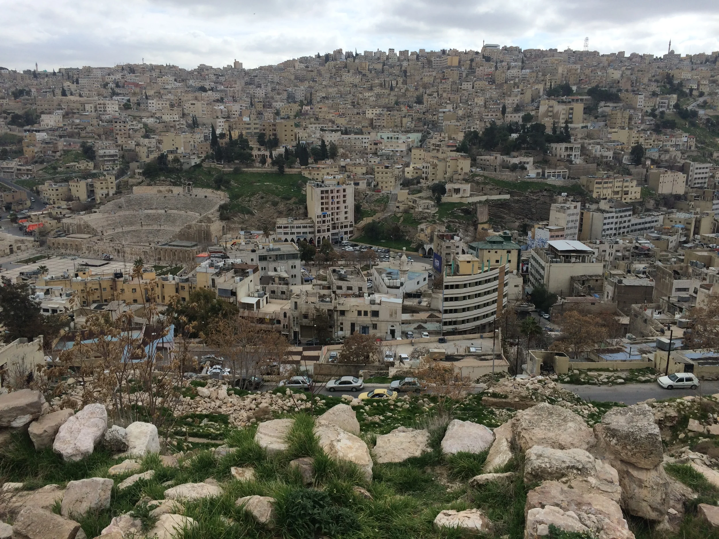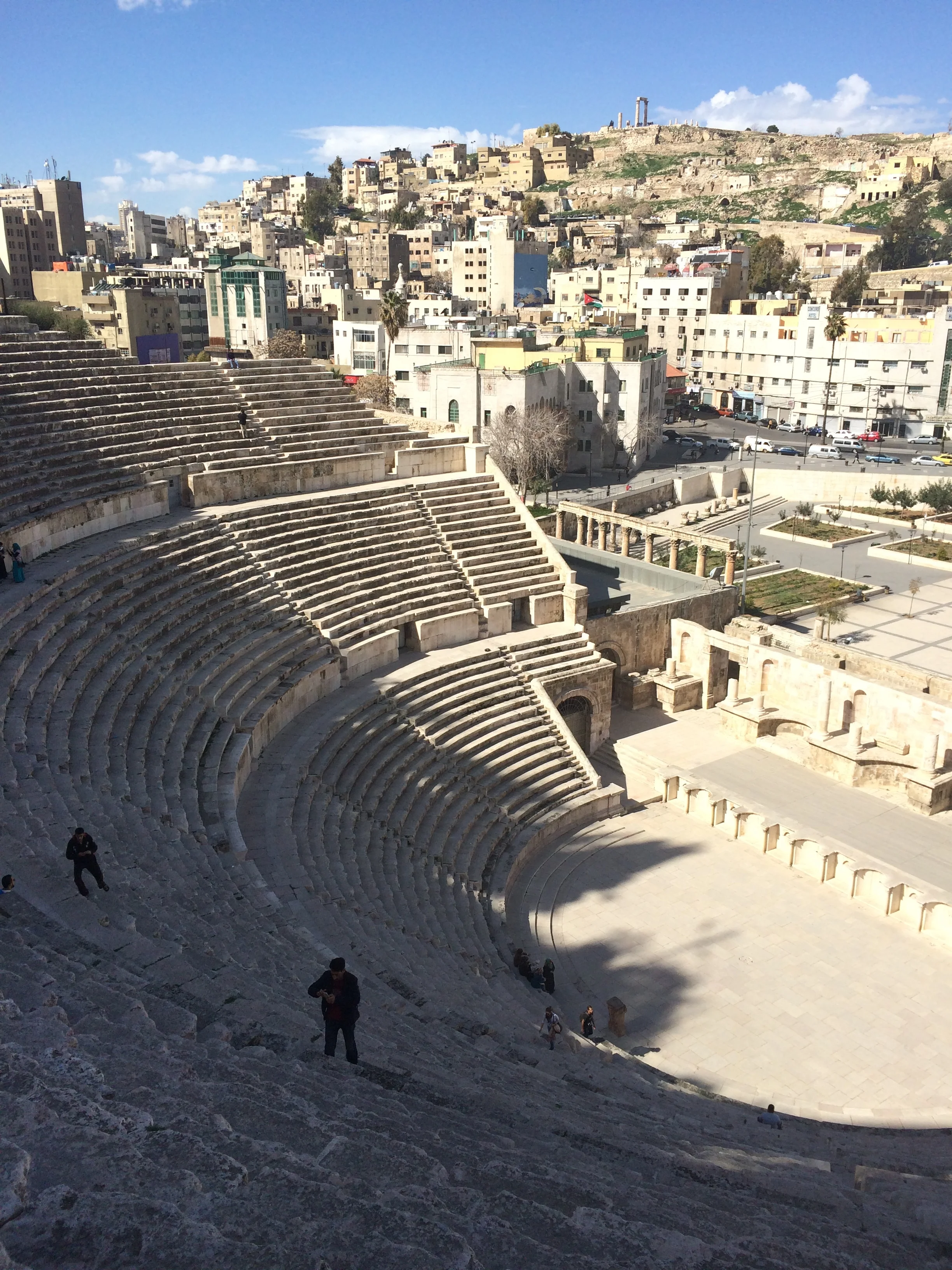 While Amman lacks a large, grandiose array tourist attractions, the city more than makes up for with its atmosphere. From high above, the innumerable apartments and hotels in the city center are all crammed right next to one another - every single square inch of the city is filled with something. The stone facades of many of these buildings appear poorly taken care of and are covered in various stains from years of harsh weather, pollution, and liquids dripping down from air conditioners. Under the bright sun, the city overcomes these melancholy attributes and the buildings look like a natural extension of the surrounding hills as if they were carved out of the earth like in Petra. Looking down at the central part of Amman, I am constantly amazed by the giant Roman amphitheater located in the heart of the city. Considering its age and size, I’m amazed at how well it’s been preserved; ironically it looks better than most of the surrounding apartments.